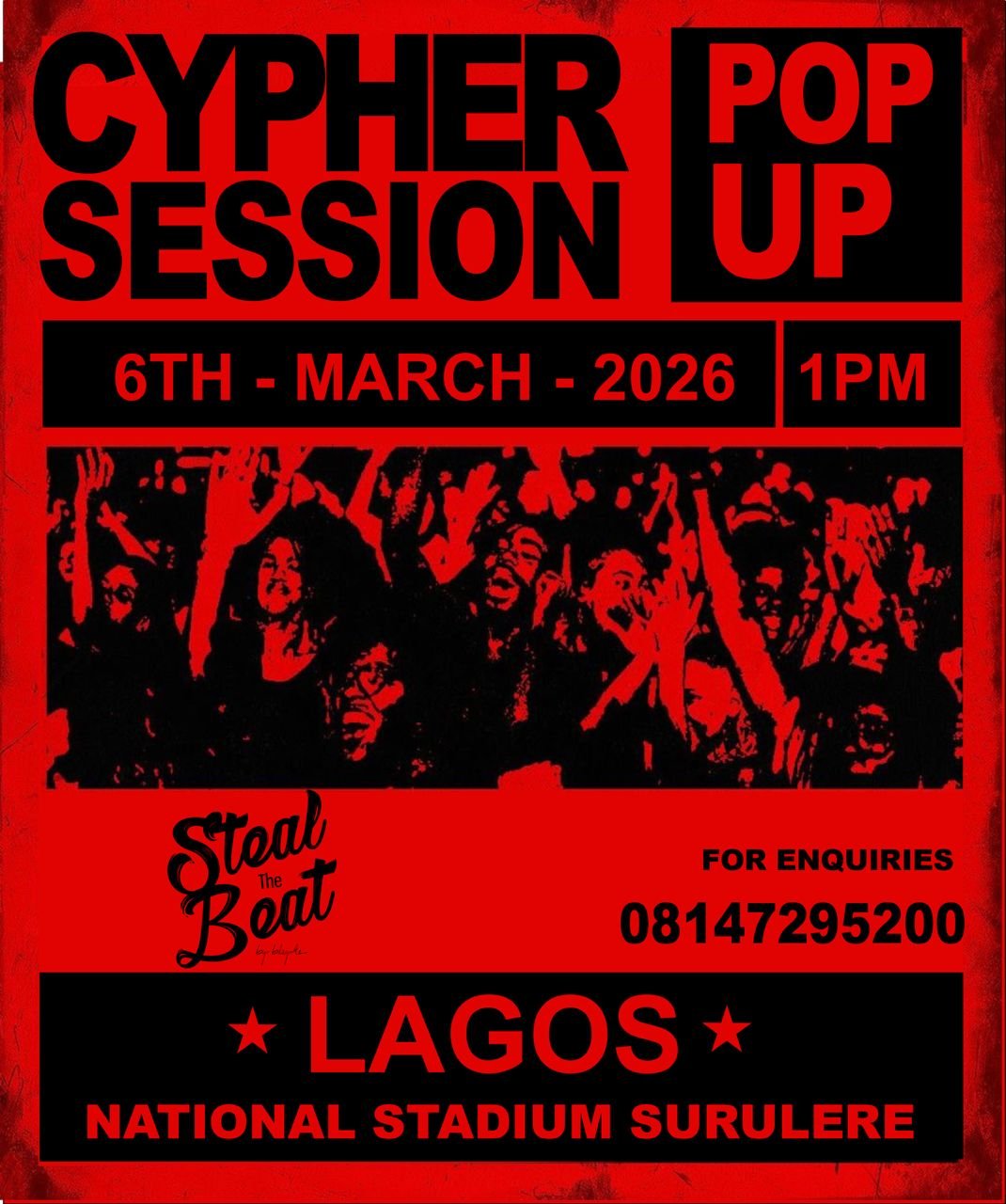 Steal the Beat is a high-energy Afrobeats cypher designed to celebrate rhythm, originality, and street-to-stage talent. Producers, vocalists, dancers, and creatives come together in one space to reinterpret beats, flip melodies, and create moments that can’t be repeated.